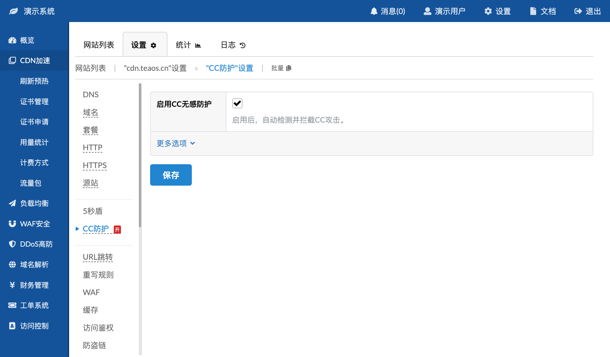 • 启用CC无感防护 - 是否启用CC防护启用后自动检测并拦截CC攻击